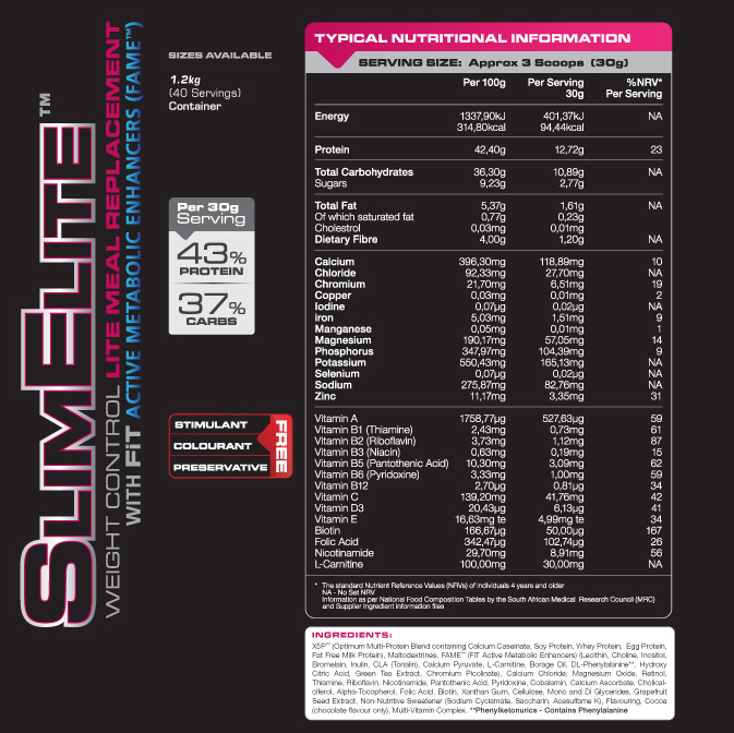 FiT SlimElite™has an exclusive “lite” formula which is designed to provide optimum nutrition to help speed up the metabolism, while simultaneously reducing hunger pangs, calorie intake and fat deposition. A total of six meals a day is recommended. Three of these should be